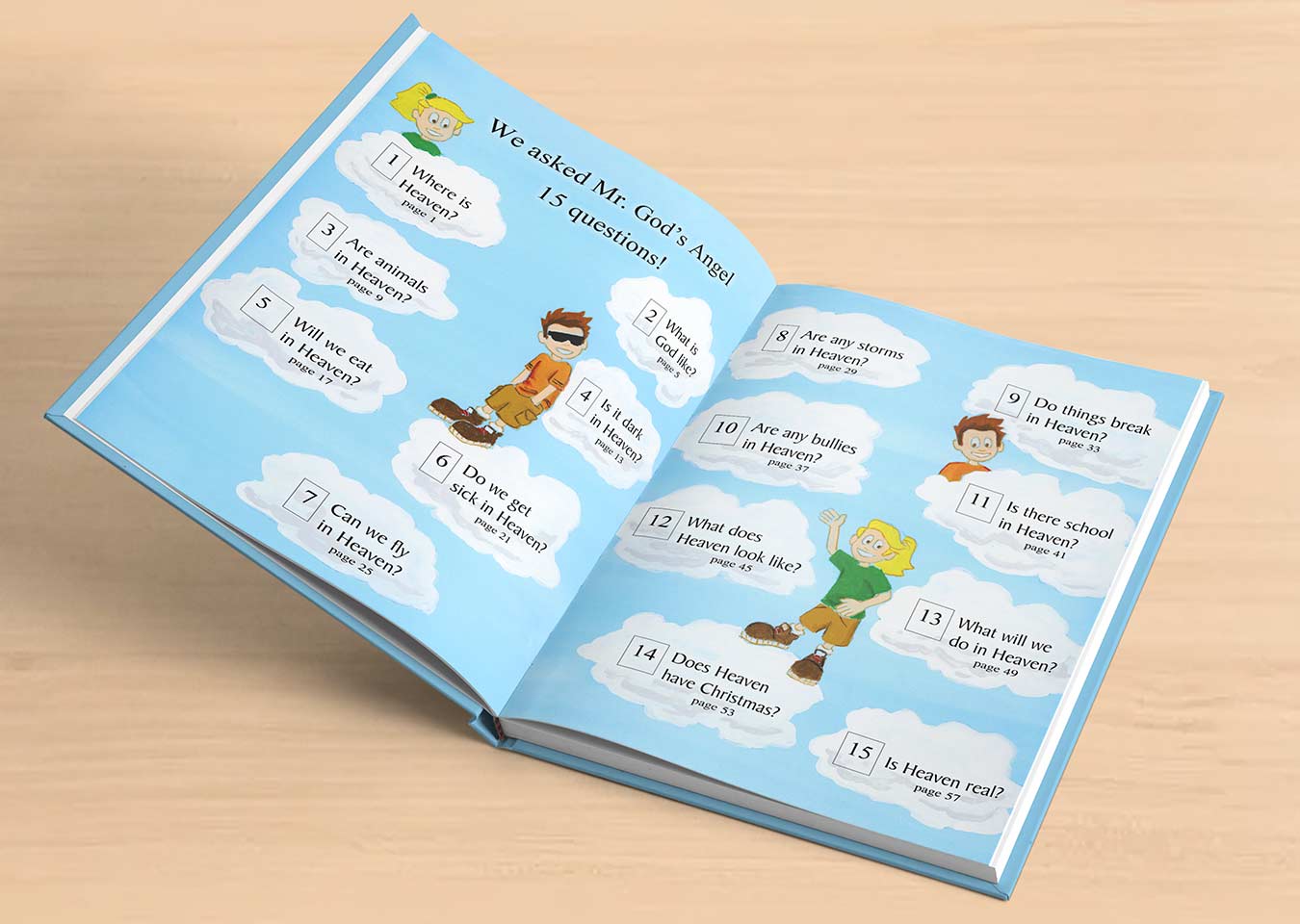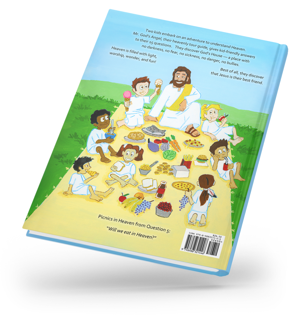 A “heavenly adventure of the imagination!”  Whimsical storybook filled with original color illustrations you will read to your children and grandchildren at bedtime or anytime, again and again. A brother and sister visit Heaven and meet Mr. God’s Angel, who helps them understand Heaven through a series of questions kids would ask –– “Are there animals in Heaven?”  “Will we eat in Heaven?” “What does Heaven look like?” “Will we fly in Heaven?” “Are there bullies in Heaven?” Lots of Biblical truths woven into a fun format even little ones can understand. This storybook is part of the Winsome Movement, providing godly resources to reinforce our children’s rightful inheritance of “winsome” childlike innocence and joy found only in God.  77 page colorful storybook. Visit winsomemovement.com to learn more.
